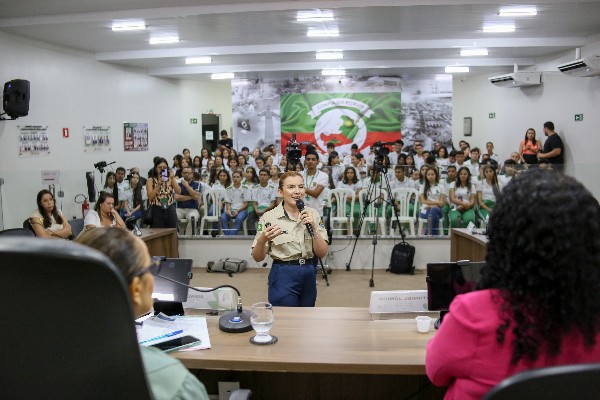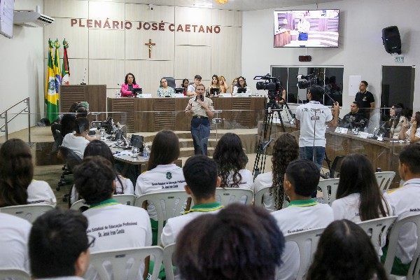 Estudantes das escolas de ensino médio Dr. José Iran Costa, José Corrêa e Maria Afonsina Diniz Macedo acompanharam as discussões e participaram das reflexões sobre cidadania, direitos e respeito às mulheres