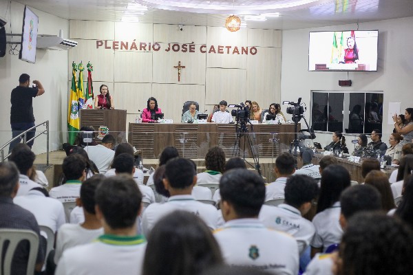 O encontro, no Plenário Vereador José Caetano, reuniu autoridades, estudantes e representantes de instituições locais para discutir memória histórica e o enfrentamento à violência contra a mulher.