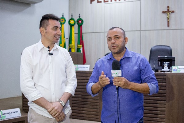O presidente da Câmara de Vereadores de Catarina, Renan Guedes, foi recepcionado pelo presidente do Legislativo varzealegrense, vereador Alan Salviano, em um encontro produtivo e cordial.