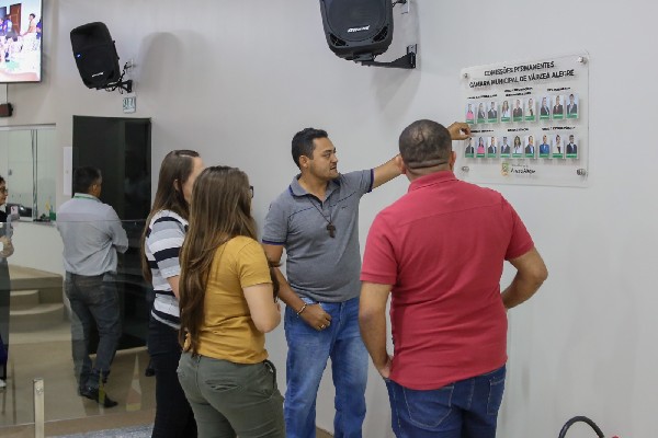 A vereadora Marina Leite e sua equipe foram recebidas pelo presidente do Poder Legislativo de Várzea Alegre, Alan Salviano (MDB), pelo vice-presidente, Michael Martins (PP) e pelo vereador Otoniel Junior (PSD). Durante o encontro, foram apresentados diversos aspectos da estrutura física da Câmara Municipal, incluindo os gabinetes dos vereadores, o plenário, a Procuradoria da Mulher, o setor de contabilidade e outros departamentos essenciais para o funcionamento eficiente da Casa Legislativa.
