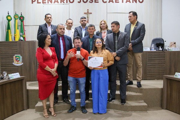Após a discussão e votação das matérias do expediente, os vereadores concederam uma Moção de Aplausos ao professor e escritor Edilson Ventura por sua contribuição à educação.