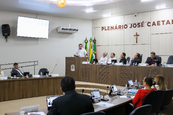Os vereadores também discutiram o Projeto de Lei nº 015/24, do Poder Executivo, que trata sobre a desafetação de bem público para doação. A matéria trata da doação de um terreno para instalação de um mini distrito industrial no município, na região de Araças.