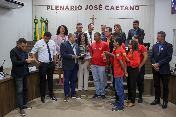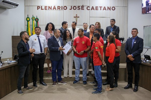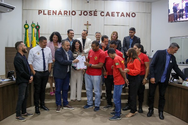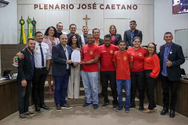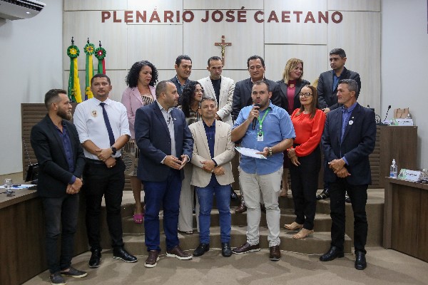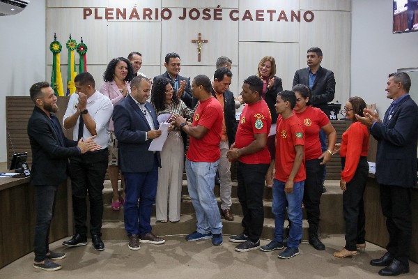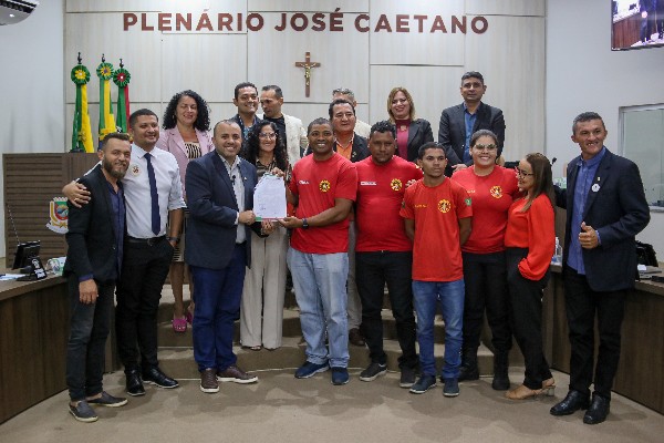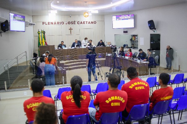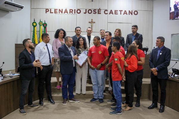 Durante a reunião, também foram registrados momentos de fotos com os Bombeiros Civis, Brigadistas Florestais, Guarda-Vidas e Socorristas, e o professor de matemática, Felipe Herbert, recebeu uma Moção de Aplausos.