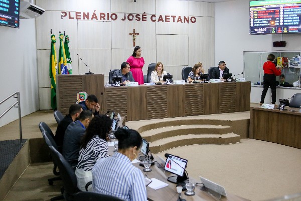 A 15ª Sessão Ordinária Plenária da Câmara de Vereadores de Várzea Alegre (CMVA) foi presidida nesta quarta-feira, 24 de abril, pela vereadora Dra. Luciana Rolim (PSB). Na ausência dos vereadores membros da Mesa Diretora - Alan Salviano (MDB) - Presidente, Michael Martins (PSB) - Vice-Presidente, Pedro Bitu (PSB) - 1º Secretário e Kleiton do Bar (MDB) - 2º Secretário - a escolha da vereadora segue o Regimento Interno da Casa, tendo sido a parlamentar mais votada entre os vereadores para presidir a sessão. No comando dos trabalhos, Dra. Luciana formou a direção da mesa com o vereador Luiz do Conselho na vice-presidência, a vereadora Menésia Simião na primeira secretaria e o vereador Marcelo Fledson na segunda secretaria. Além dos componentes da mesa, estiveram presentes na reunião os vereadores Otoniel Júnior (PSD), Robério Vieira (PSD), Maiko do Chapéu (MDB), Ciete do Sindicato (PT) e Valdilene Bitu (PSD). Após os debates, os vereadores presentes votaram pela aprovação, em segunda discussão, das seguintes matérias: