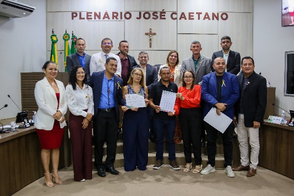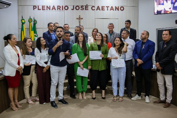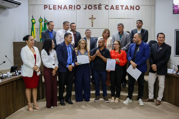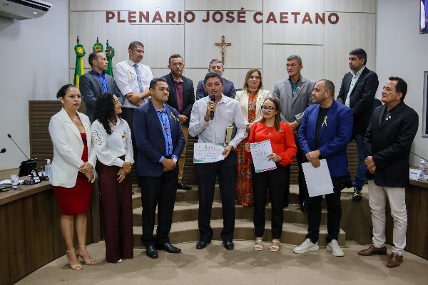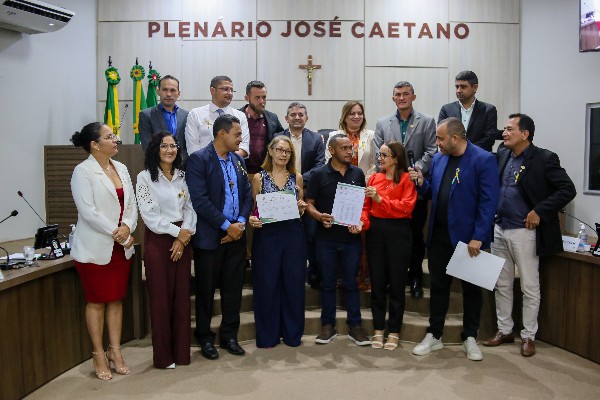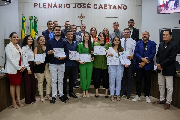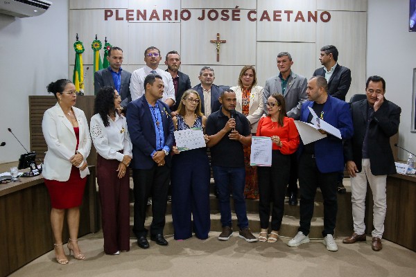 A primeira homenagem da noite foi destinada à Associação Comunitária do Caldeirão e sítios vizinhos. A Moção de Aplausos, de autoria do vereador Michael Martins, foi entregue em reconhecimento ao trabalho comunitário exemplar realizado pela associação.