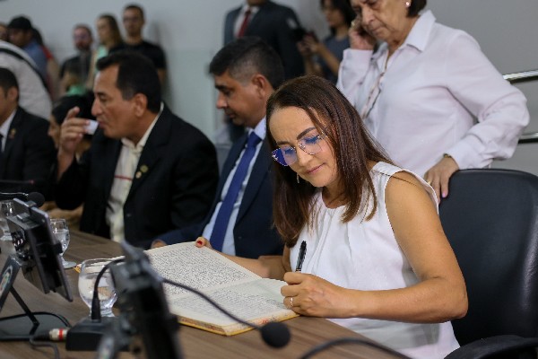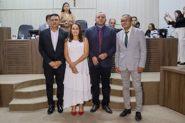 A cerimônia foi presidida pelo vereador Alan Salviano (MDB), enquanto o prefeito Flávio Filho também discursou, destacando os desafios da gestão pública e a importância do apoio do Poder Legislativo. "A gestão exige superação diária para acertar e promover ações responsáveis que atendam às necessidades da nossa população", declarou o prefeito. O vice-prefeito, Antônio Neto (PSD), também esteve presente na solenidade.
