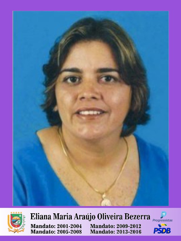 Eliana Maria Araújo Oliveira Bezerra - Mandatos: 2001 a 2004/2005 a 2008/2009 a 2012/2013 a 2016;
