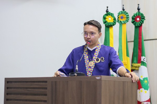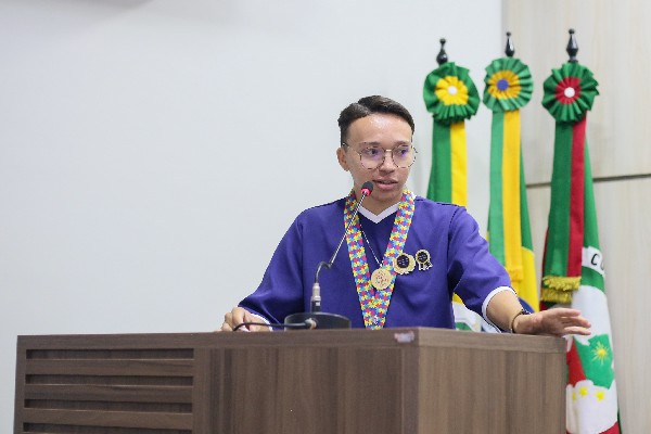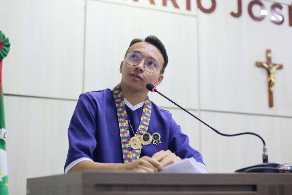 O jovem também mencionou sua interação com a Câmara Mirim, destacando a visão ampla que as crianças têm sobre a inclusão e relembrou a homenagem que recebeu dos vereadores mirins no ano passado. Ele leu um trecho da moção que destacou seu empenho e dedicação em prol da causa autista, reforçando que "a inclusão em nosso município está pronta para dar o próximo passo: deixar de ser assistida para ser vivida".