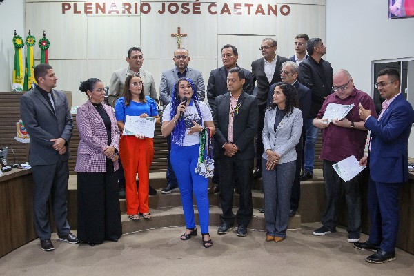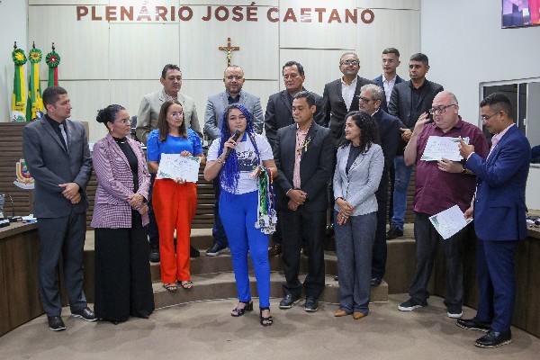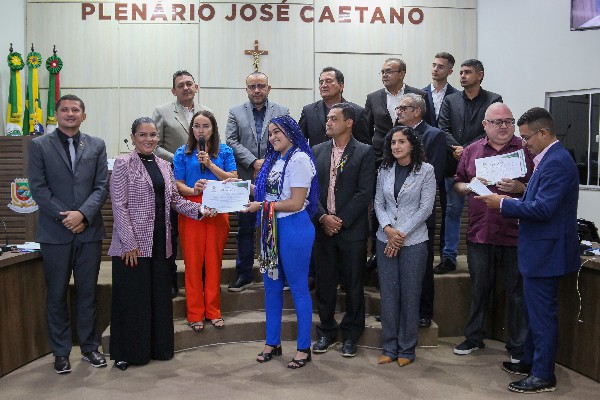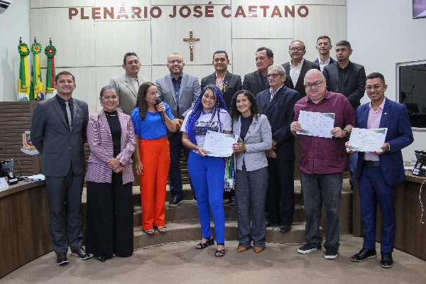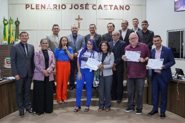 Fechando o momento de homenagens, a Câmara entregou moções de aplausos às educadoras Josefa Alves de Menezes, Renata (Escola São Pedro), Franciana (coordenadora da Escola Manoel Salvador), Janaína (Escola Maria Dolores) e Cicera Diniz, pelo trabalho desenvolvido durante a semana dedicada à conscientização sobre o autismo no distrito de Canindezinho. O projeto envolveu passeatas, palestras, visitas e atividades escolares que destacaram o compromisso com a inclusão escolar e social das pessoas com TEA.