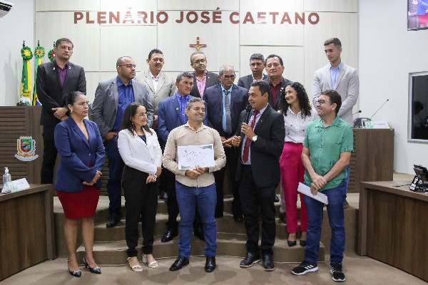 A presidente da Câmara, vereadora Menésia Simião (PT), conduziu o ato, destacando a trajetória de Pedro Bitu e o apoio expressivo dos vereadores e vereadoras, que subscreveram a moção. A homenagem reconhece o compromisso histórico do novo presidente com a luta em defesa dos direitos dos servidores públicos.